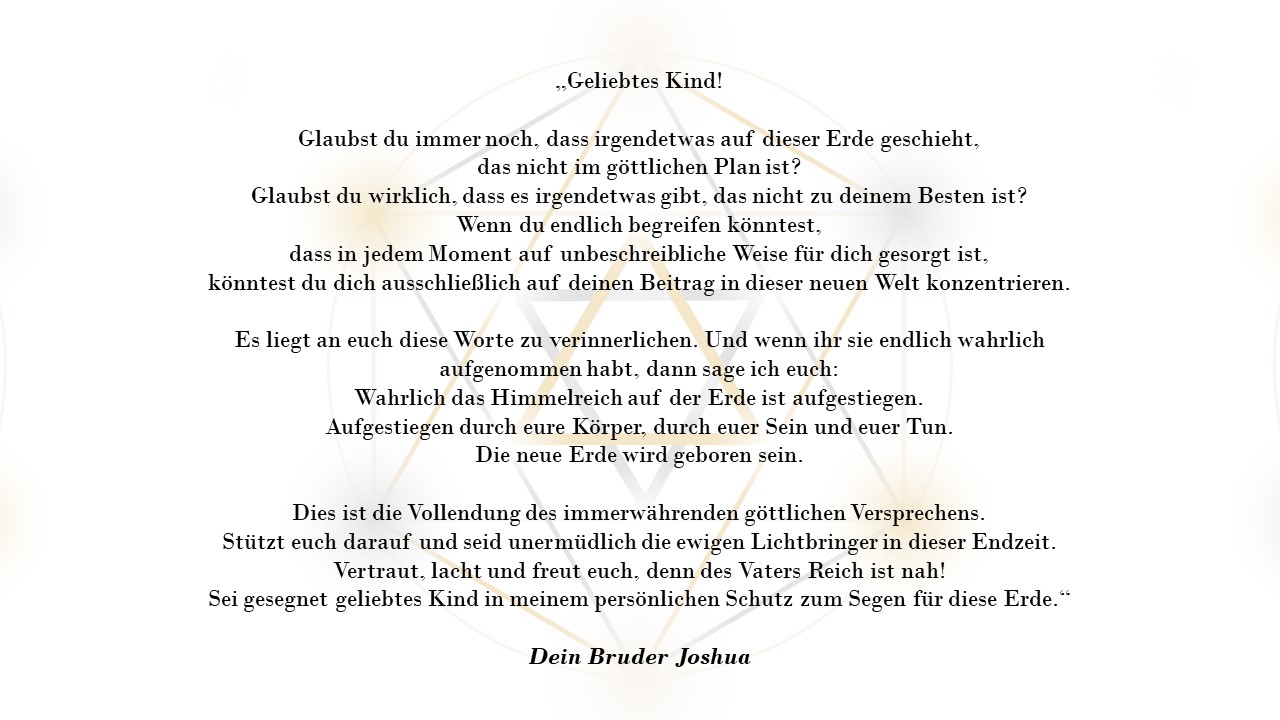 Liebe Barbara! Was musstest du nur ertragen, ich spüre so viel Sehnsucht in deinen Zeilen! Ich freue mich sehr, dass dir die Gemeinschaft des Kongresses wieder Mut gemacht hat! Ich bin mir sicher, wir sind sehr nah dran! Wir schaffen das! Gemeinsam! Die neue Erde ist schon da! Bleib dran, richte dich immer wieder aus. Jeden Tag auf´s Neue! Ich mache das auch täglich. Und wenn du möchtest, dann hab ich hier noch die Botschaft, welche ich von Joshua in Vorbereitung zum ersten Kongress in einer schlaflosen Nacht erhalten habe. Sie erinnert mich daran, dass alles gut ist, wie es ist. Aber lies selbst wenn du möchtest: https://www.selbstmeisterung.net/wp-content/uploads/2019/09/Botschaft-Joshua-2019.jpg Ich wünsch dir nun viel Kraft für diese Zeit und vergiss niemals ins Licht zu schauen, egal durch welche dunklen Täler du gerade streifst! Dann können wir es schaffen! Verbunden im Licht! Alles Liebe und in Verbundenheit! Ingrid